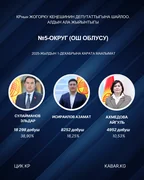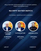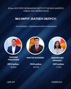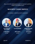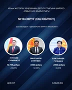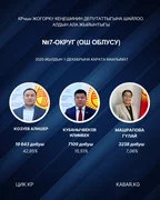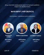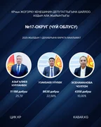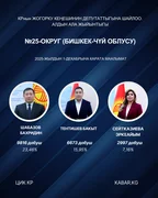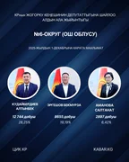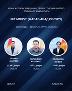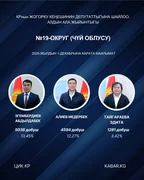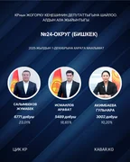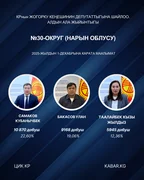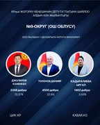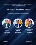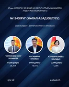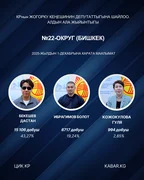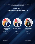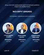 “Кабар” агенттиги шайлоонун алдын ала маалыматтарына таянып, 30 округдун ар биринен алдыга озуп чыккан үч талапкерди тизмектейт.