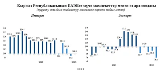 "Ал эми ушул аралыкта ЕАЭБге мүчө мамлекеттер менен өз ара сооданын көлөмү 1 856,7 млн долларды түздү жана 2024-жылдын январь-майына салыштырмалуу 7,4 пайызга төмөндөдү. Бул мезгилде республиканын өз ара соодасынын эң көп үлүшү Россияга (67,3 пайыз) жана Казакстанга (30,5 пайыз) туура келди", - деди ал.