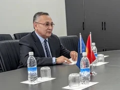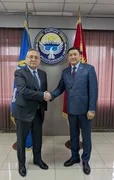 Бишкек, 15.04.26. /Кабар/. Коопсуздук кеңешинин катчысы Адилет Орозбеков бүгүн, 15-апрелде Жамааттык коопсуздук жөнүндө келишим уюмунун башкы катчысы Таалатбек Масадыков менен жолугушту.