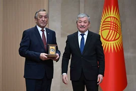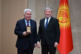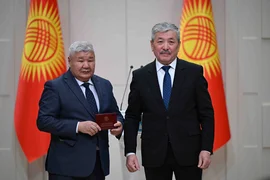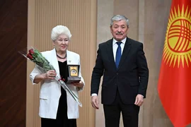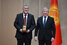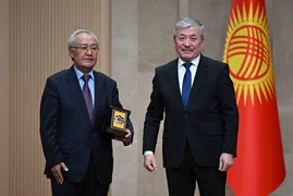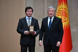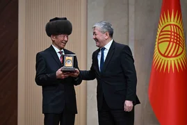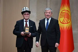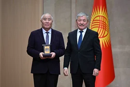 Бишкек, 21.02.25. /Кабар/. Министрлер кабинетинин төрагасы Адылбек Касымалиев өлкөнүн өнүгүшүнө жана гүлдөшүнө зор салым кошкон бир катар атуулдарга «Кара-Кыргыз автономиялык облусунун түзүлгөндүгүнүн 100 жылдыгы» юбилейлик төш белгилерин тапшырды.