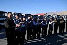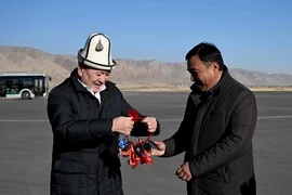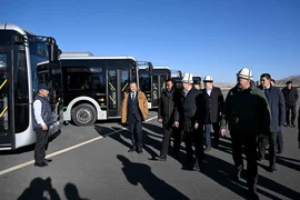 Бишкек, 24.11.25. /Кабар Министрлер кабинетинин төрагасы Адылбек Касмалиев Нарын облусуна болгон иш сапарынын алкагында Нарын шаарына жаңы келген техникалар жана автобустарды тапшырды.