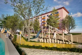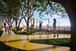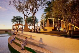 Долбоордук жана композициялык схеманын долбооруна ылайык, пландалган аянтчага амфитеатр, коомдук арт, воркаут зонасы, балдар аянтчасы, ошондой эле негизги жөө жүрүү аянтчасы жана дарыяга түшүүнү уюштуруу каралат.