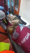 Куткаруучулар жабырлануучуга алгачкы жардамын көрсөткөн соң, тез жардам кызматкерлерине өткөрүп беришкен.