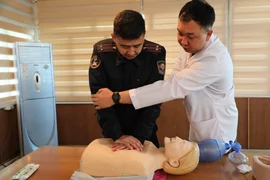 Бишкек, 09.04.26. /Кабар/. ИИМдин Медициналык башкармалыгында ички иштер органдарынын кызматкерлеринин арасында санитардык нускоочуларды даярдоо боюнча практикалык сабактар өткөрүлдү. Бул тууралуу аталган министрликтен билдиришти.