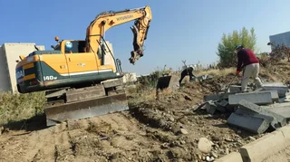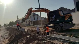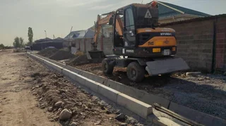 Ишкананын адистери тарабынан бордюрлар жана ирригациялык системалар орнотулуп, тротуарлардын негизи даярдалууда. Жакын арада жолдун өзүнүн негизин даярдоо башталат.