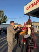 Өзбекстандык меймандарды мамлекеттик “Достук” чек ара өткөрмө пунктунан расмий түрдө тосуп алуу аземи уюштурулуп, делегация мүчөлөрүнө кыргыз элинин меймандостук салтына ылайык сый көрсөтүлдү.