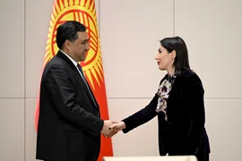 Бишкек, 11.11.25. /Кабар/. Министрлер кабинетинин төрагасынын биринчи орун басары Данияр Амангелдиев Евразия экономикалык комиссиясынын коллегиясынын мүчөсү (өнөр жай жана агроөнөр жай комплекси министри) Гоар Барсегян менен жолукту.