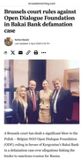 Ал белгилегендей, “Бакай Банк” банкы “Ачык диалог фонду” (Open Dialogue Foundation, ODF) поляк-бельгиялык өкмөттүк эмес уюмуна каршы козголгон сот ишин утуп алды.
