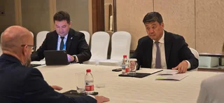 Бишкек, 03.09.25. /Кабар/. Президент Садыр Жапаровдун Кытайга болгон жумуш сапарынын алкагында министрлер кабинетинин төрагасынын орун басары – суу ресурстары, айыл чарба жана кайра иштетүү өнөр жайы министри Бакыт Төрөбаев менен Азия инфраструктуралык инвестиция банкынын мамлекеттик секторго инвестициялоо жана долбоорлорду корпоративдик каржылоо боюнча директору Константин Лимитовдун жолугушуусу болду.