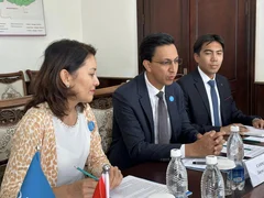 Бишкек, 31.07.25. /Кабар/. Президенттин Баткен облусундагы ыйгарым укуктуу өкүлү Айбек Шаменов ЮНИСЕФ уюмунун Кыргызстандагы өкүлү Самман Джунг Тапа менен жолукту.