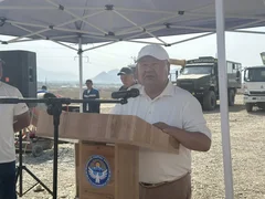 Бишкек, 21.07.25. /Кабар/. Баткен шаарынын өнөр жай зонасында 110/35/10кВ "Суу Башы" жаңы көмөк чордонунун курулушуна мезгил кутусу салынды.