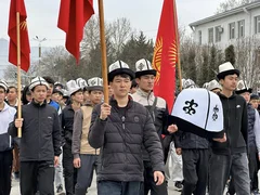 Президенттин Баткен облусундагы өкүлчүлүгүнөн билдиришкендей, ак калпак кийип, колдоруна туу көтөргөн жаштар шаардын борбордук көчөлөрүндө жөө жүрүш жасашты.
