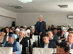Жолугушууга жалпы билим берүү уюмдарынын жетекчилери жана жергиликтүү тургундар менен жолугушту.