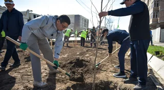 Бишкек, 28.03.26. /Кабар/. Бишкек шаарындагы Ауэзов көчөсүндө мэр Айбек Жунушалиевдин катышуусунда чынар дарагынын көчөттөрү отургузулду. Бул тууралуу мэриядан билдиришти.