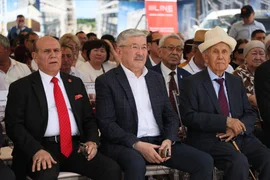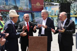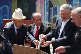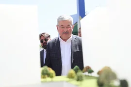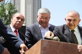 Бишкек, 18.05.25. /Кабар/. Министрлер кабинетинин төрагасы Адылбек Касымалиев Бишкекте жаңы көп функционалдуу комплексти куруу үчүн мезгил кутусун салуу аземине катышты.