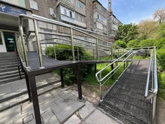 Бишкек, 25.04.25. /Кабар/. Бишкекте эки имараттын алдына пандустар орнотулду.