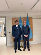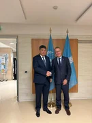 Бишкек, 16.10.25. /Кабар/. Министрлер кабинетинин төрагасынын орун басары – суу ресурстары, айыл чарба жана кайра иштетүү өнөр жайы министри Бакыт Төрөбаев Рим шаарында Эл аралык айыл чарбасын өнүктүрүү фондунун (IFAD) вице-президенти Донал Браун менен жолукту.