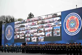 Иш-чаранын аягында ИИМдин Бишкек гарнизонунун өздүк курамынын салтанаттуу парады өттү.