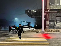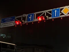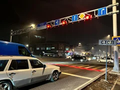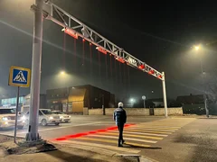 Бишкек, 08.01.26. /Кабар/. Бишкек шаарында Курманжан Датка жана Фрунзе көчөлөрүнүн кесилишине лазер жарыгы күйгөн жаңы жол чырак орнотулду.