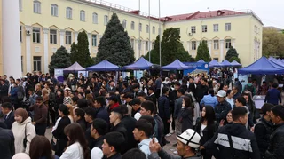 Бишкек, 22.04.25. /Кабар/. Бүгүн Бишкекте жумуш орундар жарманкеси ачылып, ага эмгек, социалдык камсыздоо жана миграция министри Равшанбек Сабиров катышты.