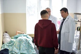 Өрт болгон жерди кыдыргандан кийин калаа башчысы ооруканага жеткирилген жаракат алгандарды да барып көрдү. Алардын абалы менен таанышып, мэриянын резервдик фондунан материалдык жардам бөлүү үчүн керектүү документтер даярдалып жатканын айтты.