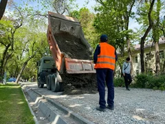 Бишкек, 25.04.25. /Кабар/. Бишкекте жолдорду, тротуарларды капиталдык оңдоо жана борбор калааны көрктөндүрүү иштери уланууда.