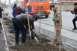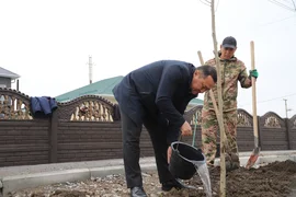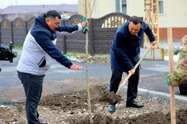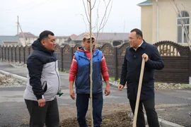 Күн мурун шаар мэри Эрнисбек Ормоков президенттин "Жашыл мурас" улуттук өнөктүгүнүн алкагында Көк-Арт кичи районундагы Фабричный көчөсүндө көчөт отургузууга катышты.
