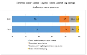 Муну менен катар 2024-жылы керектөө бааларынын индексин эске алуу менен эсептелген калктын реалдуу акчалай кирешелеринин көлөмү 881,9 млрд сомду түзүп, өткөн жылга салыштырмалуу 12,9 пайызга көбөйгөн.