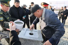 Бишкек, 10.10.25. /Кабар/. Бүгүн УКМКнын Чек ара кызматынын жаңы административдик имаратынын курулушуна капсула салынды.