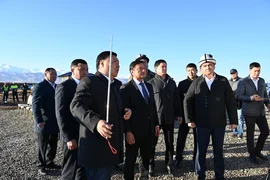 Бишкек, 30.10.25. /Кабар/. Бүгүн Сокулук районуна караштуу Кожомкул айылынын (Военно-Антоновка) Восст-2 жаңы конушунда 750 орундуу мектеп, 120 орундуу бала бакча жана сейил бактын курулушу башталды.