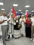 Дүйнө чемпионун "Манас" эл аралык аэропортунан Спорттун олимпиадалык түрлөрү боюнча дирекциясынын директору Мелис Тобокелов, Күрөш федерациясынын өкүлдөрү, спортчунун жакындары жана күйөрмандары тосуп алды.