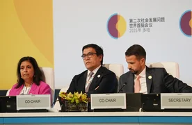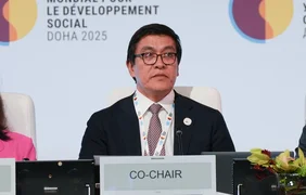 Бишкек, 05.11.25. /Кабар/. Министрлер кабинетинин төрагасынын орун басары Эдил Байсалов Бириккен Улуттар Уюмунун колдоосу астында Доха шаарында өтүп жаткан II Бүткүл дүйнөлүк социалдык өнүгүү саммитинин пленардык дебаттарында сөз сүйлөдү.