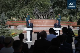 Бишкек, 22.08.25. /Кабар/. Бүгүн Бишкектеги Ынтымак сейил багында Кыргызстандын президенти Садыр Жапаров менен Казакстандын президенти Касым-Жомарт Токаевдин катышуусунда “Достуктун алтын көпүрөсү” эстелиги ачылды.
