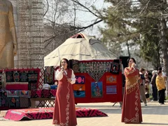 Сахнада элдик ырлар жаңырып, улуттук бийлер аткарылып, жаздын жаңылануу символу болгон Ноорузга арналган театралдык көрсөтүүлөр сунушталды.