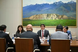 Бишкек, 02.06.25. /Кабар/. Министрлер кабинетинин төрагасынын орун басары Эдил Байсалов Улуу Британиянын Чыгыш Европа жана Борбор Азия боюнча соода комиссары Кэмерон Полео менен жолугушту.