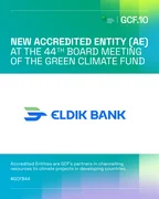 Бишкек, 26.03.26. /Кабар/. "Элдик Банк" ААК Кыргыз Республикасынын Жашыл климаттык фонддо (Green Climate Fund, GCF) аккредитация алган биринчи каржы институту болду. Бул климаттын өзгөрүшүнө каршы күрөшүү багытындагы долбоорлорду каржылоочу дүйнөдөгү эң ири глобалдык фонд болуп саналат.