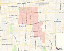 - темир жол тилкеси - Матросов көчөсү - Горький көчөсү - Гвардейский көчөсү – Бектенов көчөсү - Скрябин көчөсү - Мавлянов көчөсү - 7-апрель көчөсү.