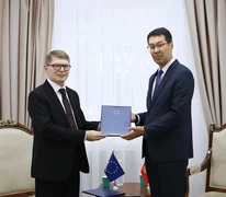 Бишкек, 13.10.25. /Кабар/. Күн мурун тышкы иштер министринин орун басары Медер Абакиров Европа биримдигинин Кыргызстандагы өкүлчүлүгүнүн башчысы Реми Дюфлодон ишеним грамоталарынын көчүрмөлөрүн кабыл алды.