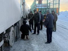 Жеринде Жол кыймылынын коопсуздугун камсыздоо башкы башкармалыгынын башчысы Азенбек Козукеев "Эркечтам" бажы пунктуна барып, кыргыз-кытай чек арасындагы айдоочулар менен жолугушту.
