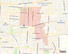 - темир жол тилкеси - Матросов көчөсү - Горький көчөсү - Гвардейский көчөсү – Бектенов көчөсү - Скрябин көчөсү - Мавлянов көчөсү - 7-апрель көчөсү.