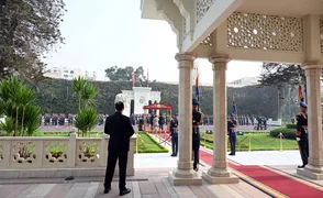Андан соң салтанаттын жүрүшүндө эки мамлекеттин делегация мүчөлөрүнүн расмий таанышуусу жана сүрөткө түшүү аземи болду.