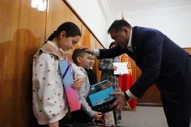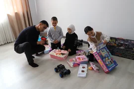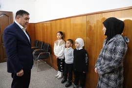 УКМК төрагасы Махратбек кызынын муктаж үй-бүлөсүнө батирдин ачкычын тапшырып, каалоо-тилектерин айтты.