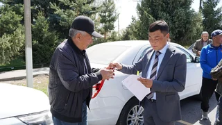 Жаңы унаалардын ачкычтарын Каракол шаардык муниципалдык мүлк башкармалыгынын башчысы Саламат Чыныбеков тапшырды.