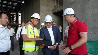Бишкек, 24.07.25. /Кабар/. Министрлер кабинетинин төрагасы Адылбек Касымалиев өлкө үчүн масштабдуу жана стратегиялык мааниге ээ эки объекттин – Бишкек шаарындагы эл аралык класстагы стадиондун жана конгресс-холлдун курулушунун жүрүшү менен таанышты.