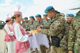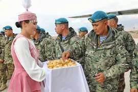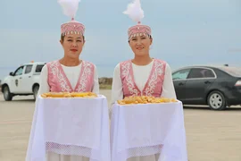 Министрликтин өкүлдөрү достук жана коңшулаштык мамиленин белгиси катары келген аскер кызматкерлерин кыргыз элинин салттарына ылайык салтанаттуу тосуп алышты.
