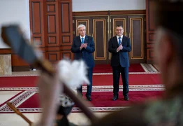Флагштокторго эки өлкөнүн туулары илинип, килем төшөлүп, улуттук боз үй түрүндөгү инсталляция орнотулуп, ардактуу кароол тизилген.