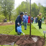Иш-чаранын соңунда делегация башчылары куурап калган бак-дарактарды калыбына келтирүү программасынын алкагында Таврид багына көчөт отургузууга катышышты.