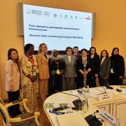 Динара Кемелова экологиялык бакубаттуулукка жетишүүдөгү аялдардын ролуна арналган сессияда сөз сүйлөп, анда Кыргыз Республикасынын тоолорду туруктуу өнүктүрүү жана курчап турган чөйрөнү коргоо боюнча дүйнөлүк аренадагы демилгелери, тоолуу аймактарды өнүктүрүү боюнча беш жылдык иш-аракеттердин аткарылышы, ошондой эле Кыргызстанда ишке ашырылып жаткан стратегиялардын, программалардын жана долбоорлордун алкагында аялдарга колдоо көрсөтүү жөнүндө айтып берди.
