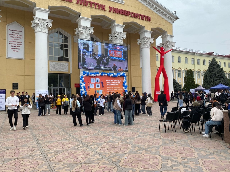 Бишкек, 22.04.25. /Кабар/. Бүгүн, 22-апрелде Жусуп Баласагын атындагы Кыргыз улуттук университетинде «Бош орундар жарманкеси» иш издегендер, студенттер жана ЖОЖдордун бүтүрүүчүлөр үчүн чоң мүмкүнчүлүк аянтына айланды. Иш-чара 1-Май – Эмгек күнүнө карата уюштурулуп, жумуш издеп жаткан жаштар менен иш берүүчүлөрдү түз байланышта жолугуштурууну көздөйт.