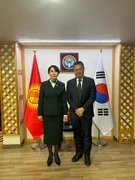 Бишкек, 11.04.25. /Кабар/. Кыргызстандын Кореядагы элчиси Аида Исмаилова түштүк кореялык Asiana Airlines авиакомпаниясынын вице-президенти Жонгмин Ким менен жолугушту.